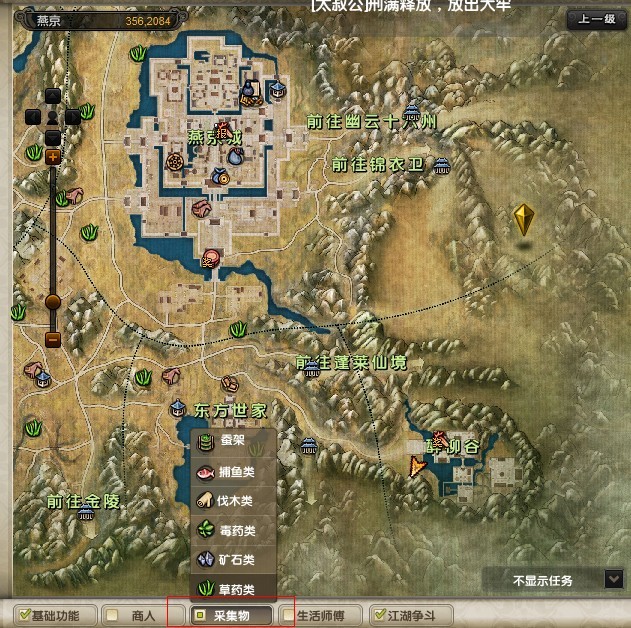 采集物可以在每个地图上面都可以查找到,目前还是固定的刷新点。按M打开大地图,然后选择上面所示就行。