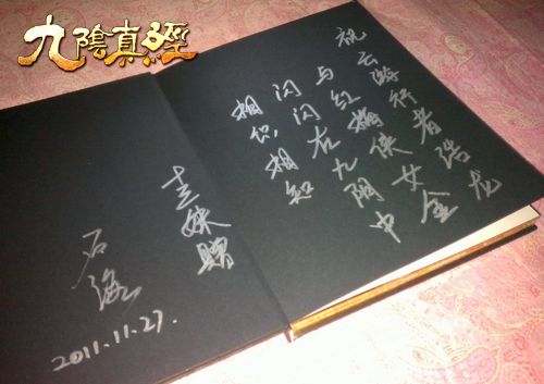 2011年11月27日,《九阴真经》七城线下活动上海站合作网吧东方数娱迎来了一位特殊的玩家,这位玩家此次前来签收并非为了自己,而是受“金闪闪”之托而来。原来他们之前便已经在游戏中相识相知。“云游行者”和“红梅女侠”的故事也成为了区域性激活码测试期间的一段佳话。蜗牛总裁石海亲笔为为云游行者和红梅女侠题词。