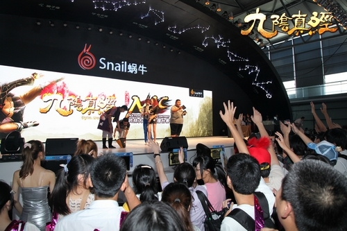 2012CJ现场蜗牛展台人气爆棚,26日上午《九阴真经(新手、门派、轻功、奇遇)》NAC(武林大会全国擂台赛)三位新科擂主亮相舞台,为现场观众表演九阴真武侠打斗,并赢得阵阵喝彩。一直以来《九阴真经》创新的打斗系统是玩家亲睐的玩法之一,全国擂台赛的顺利举办更是让九阴武学打斗再次深入人心,此次擂台表演赛的三位擂主田咣咣、秦鬼和王科在刚刚结束的上海站擂台赛上技压群雄,此番移师CJ现场表演,让现场观众近距离领略了”武林高手“的风采,让我们再次来认识他们。