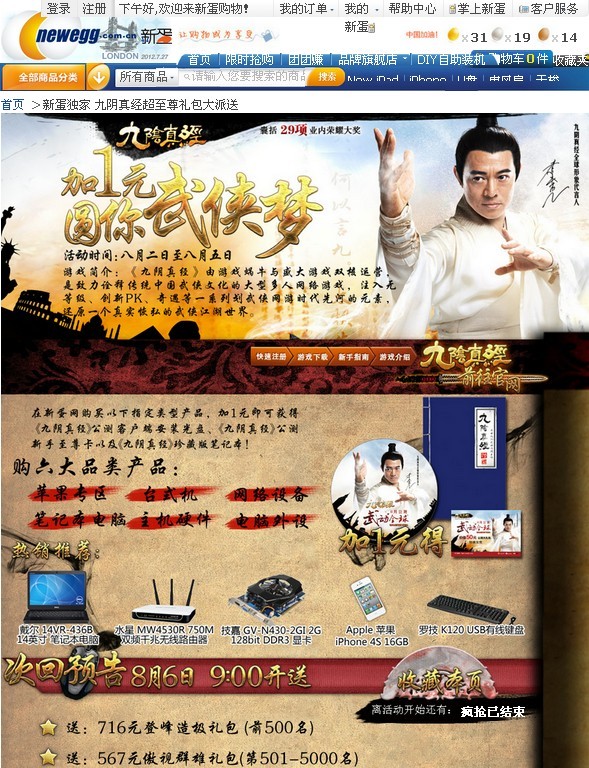 新蛋加1元得《九阴真经》客户端