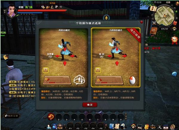 五,进入游戏,一只虾米出现在江湖里。请大家不要着急,先选好适合自己的操作模式。两种操作模式的主要差别在于后退和视角的转换上。这个在游戏PK上非常重要。