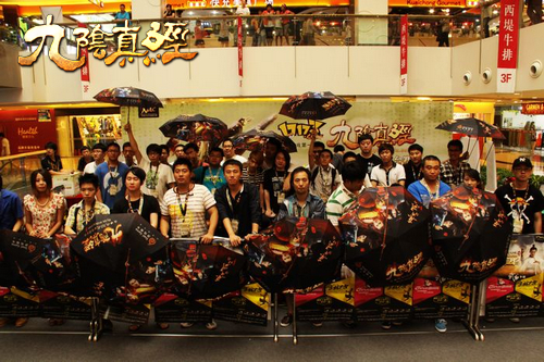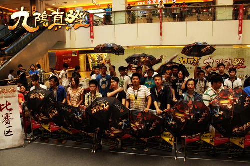 此次擂台赛重回北京,又出现了一些熟悉的面孔。对武侠的执着,让他们目无他物。对于武学的追求,使他们不断向前。这群玩家对于游戏的热爱和对于《九阴真经(新手、门派、轻功、奇遇)》的支持令蜗牛动容,蜗牛为每位参赛选手送上了《九阴真经》系列周边伞一把,以此表达对这部分玩家的重视和感谢。玩家则在现场撑开了伞,摄影留念,以此举动来表示对于《九阴真经》一同走过的感动。曾经一起走过的分享各种失败悲伤和胜利的喜悦的旅程,这都是一种人生的磨砺。他们此举也是通过自己的实际行动表示对武术入奥的支持。