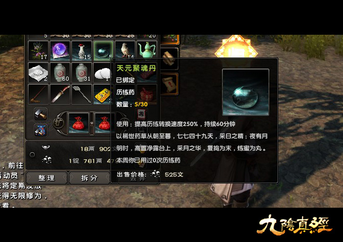 当然不是江湖名俊的玩家也能通过进行任务和使用药物提升转化速度,游戏中目前最好的历练转化速度提升药物则是天元聚魂丹,使用一次提高250%的历练转换速度,持续一小时。