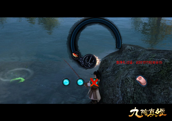 如果鱼儿开始挣扎,那么鼠标提示将变成红色,这个时候只需要静静等待鼠标提示变成白色即可继续点击将鱼往回拖。不得不说这一点做的非常逼真,很多朋友在现实中钓鱼的时候也曾经遇到过鱼上钩后却挣脱逃走脱钩的现象吧。