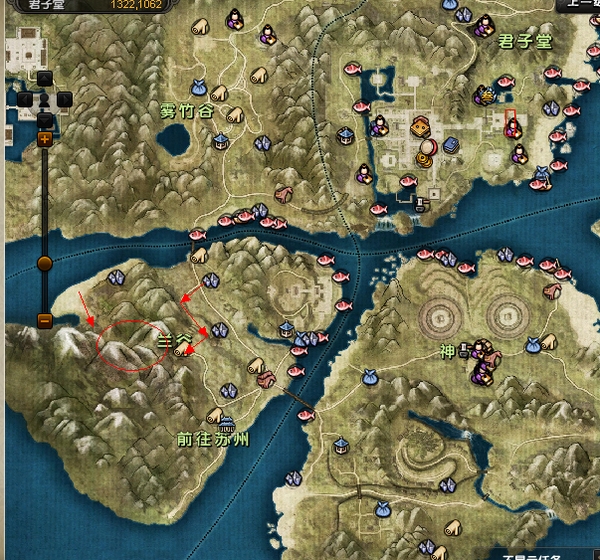 君子堂,左下角那个洞里有 山洞引路人,含金量很不错。还有君子堂接引人的君子堂守卫弟子,钱一般吧