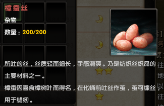 农夫拥有两个技能,一个是养蚕一个是种地,由于游戏当中土地资源十分富足,所以大部分种地所得的产物一般不会在市场上出现,但是由于蚕架数量有限,所以蚕丝拥有一个不错的市场,三种蚕丝可以和三种麻(苎麻、火麻、罗布麻,忘了怎么配对来着了)合成出瓜洲青、九霞缎、水灵绸作为中间材料提供给各制造类职业,如果非要说说种地产出可以卖的话,就是这个山药了,山药可以供厨师做干烧山药使用,更大的用处是提供给药师制作增强类药剂
