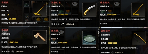 采集类技能需要对应的工具才能进行采集,这些工具可以在杂货商和技能师傅处买得: