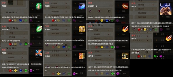 厨师的技能们。。。有图我就不一一介绍了,厨师是六个生活职业当中血量很多的一个职业,也就是皮厚,厨师的主要攻击特色就是利用特殊材料进行攻击,也就是那个很萌的骷髅,厨师会通过各种技能来增加自己特殊攻击的攻击力,然后可以控制场上的特殊材料,从而持续对对方造成伤害,为了完成这套连招需要注意的几个技能,其中最后一个技能爆炒不解释,虽然消耗极大,但是强大的效果可以一次性造成巨大的伤害。。。说一下这套连招最重要的基石部分,去腥和闷蒸这两个技能,去腥是根据场上的红色元素数量提升特殊伤害,而且会消去所有红色元素,这样就可以造成许多红色以外的连击,从而容易获得额外回合同时得到其他颜色的能量,一般来讲特殊伤害值达到8是一个比较平均的数字,而且这个技能是自从使用一直到游戏结束的,所以是一个基石技能。然后是闷蒸,这个技能可以让特殊伤害再翻倍,而且会持续6个回合,时间很长,保证了在这六个回合内的持续强大的输出。。。配合这两个技能的爆发性技能是下料,下料是自己创造一个+5的特殊材料,可以去找那种中间空一个的两个特殊材料,或者是两个临接的特殊材料,然后在自己创造完成的同时就会完成三个相邻而产生伤害,而且这个特殊材料会让特殊伤害再增加5,其中有一种特殊形式要非常注意: