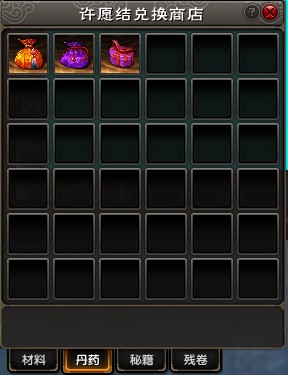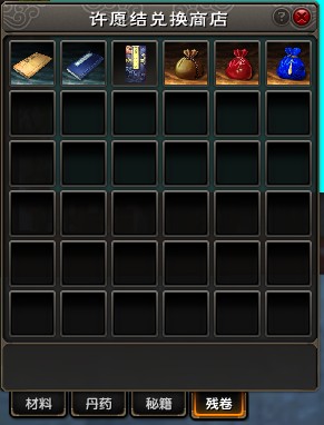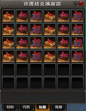 2. 许愿结可兑换奖励共分材料类、丹药类、秘籍类、残卷类四种,详情请点击查看>>>