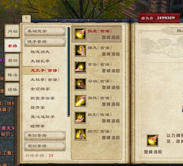 注意:龙爪手一定要学到6层,才能发挥真正效果。(捕风,捉影,抱残,批亢。)