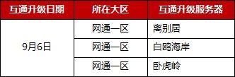 ( 注:本轮互通升级仅涉及电信一区、电信二区、电信三区、电信四区、网通一区及网通二区所有服务器)