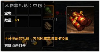 右键打开“风物志礼花”后,您将获得一定数量的风物志收集卡;
