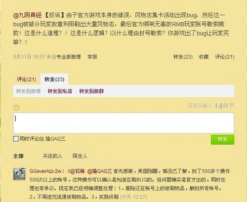 石海出面 《九阴真经》风物志BUG事件平息