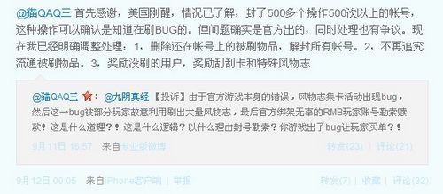 9月8号,《九阴真经(新手、门派、轻功、奇遇)》出现风物志礼花BUG,玩家利用BUG可以无限打开风物志礼花,从而获得价值不菲的游戏风物志。在发现BUG到修复漏洞的数小时时间里,不少玩家陆续刷风物志,两百万左右风物志被玩家通过这种方法获得。如何处理玩家利用游戏BUG牟利的问题一直是运营商头疼的问题。利用BUG被冻账号谁买单?通过线下交易购买利用BUG刷出来风物志的玩家损失谁买单?正常渠道购买风物志却遭受贬值玩家的损失谁买单?一个个棘手的问题摆在蜗牛面前。