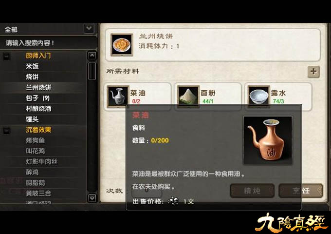 江湖儿女虽然时常风餐露宿,但却也不乏爱好美食之人。在《九阴真经》中,厨师这一生活职业让现实世界的各种美食都成为了江湖中的美味佳肴,蚂蚁上树、水煮牛肉、红烧狮子头、椒麻腰片等,来自全国各地各个菜系的美食让你垂涎欲滴,而为了增强真实性,其食材也是包括了火腿、面粉、油、黄豆、五花肉、猪蹄等数十种。