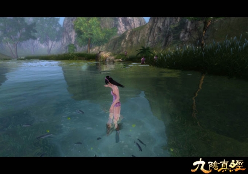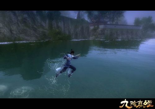 《九阴真经》中,玩家不仅可以凭借高超的踏波行、点水跳等轻功(获得、演示),如凌波仙子在水上行走、战斗,还能潜入水底畅游,且水中游鱼众多,恍如人间仙境,真实的山水环绕,美不胜收。