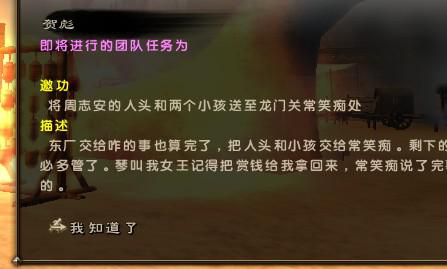 剧情很拖。。据说触发条件是声望达到名扬江湖一品。。不过不清楚是团长达到还是队友和团长一起达到。。我相信很多人应该都知道。。好吧。。下面开始。。由于龙门BUG很多。。时不时爱出一些毛病。。加上人多觉得挺卡。所以开的简配。。勿喷!