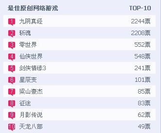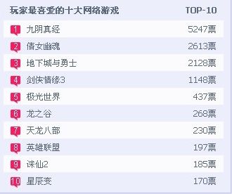 (“玩家最喜爱的十大网络游戏”大幅领先)