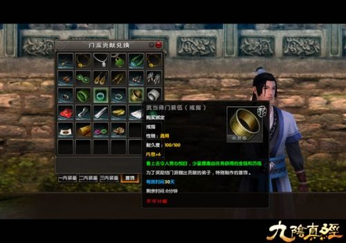 门派贡献度能够在特定的NPC处兑换专属道具和装备,这些装备不仅拥有或帅气或靓丽的外型,且属性也极为给力,增加内息、金钱及历练获取等,让你更快成为武林高手。另外,对于某些经常不小心违反门规的玩家来说,贡献度更是意义非凡,玩家每次获取门派贡献度的同时,有几率减少一定法度值。不仅如此,玩家每天获得一定的门派贡献度还可以在特定的NPC处领取一个加快历练转化的BUFF,加快你的修炼脚步。