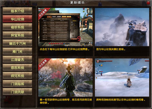 在华山论剑积分赛期间玩家通**本华山论剑,凭借战场积分、门派战、武林大会擂台等众多玩法获得华山论剑邀请函,服务器海选阶段结束后,根据玩家获得“论剑贴”数量从多到少,选出排名前32名的玩家进入下一个阶段比赛。最终决出该大区实力最强的8名玩家,代表该大区参加武林大会“大陆区”资格赛,并获得最终决赛,赢取百万奖金的席位。