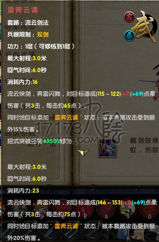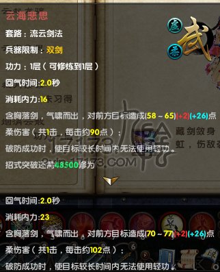流云剑法又名泼墨剑法(不知道我是不是第一个想到的,但我觉得很多人都这么觉得),还能称为**丝剑法(不需要花任何钱)获取方式为燕云十六州,50个牌子换入门1层,30个牌子换进阶(每天最多50牌子,拿个40牌子不算难)