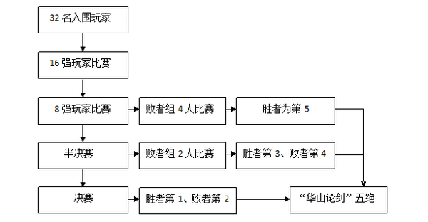 此阶段结束后,持有“论剑帖”数量排名前32名的玩家即可获得“华山论剑”比赛入围资格。