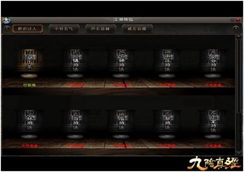 玩家可以在“江湖地位”界面中看到各式各样的江湖地位,而随着阅历的提升,玩家就可以查看各个区域相应江湖地位所需要的条件了。如果阅历不够,玩家是不能查看某些区域的地位获得条件的,所以记得江湖阅历是必要前提。