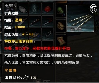 行走江湖光凭一身力气可不行,所谓不战而屈人之兵乃上上之策。九阴江湖之中,高手云集奇人倍出,想在武功之中出人头地鹤立鸡群并非易事。今据传江湖之中有一少侠,武艺平平却连败数大高手,得以有幸观战之人一语道破天机,此少侠所使用各种前所未见的暗器手法,总能出奇制胜四两拨千斤。一时间,关于此少侠所使用的各种暗器手法的传说传遍九阴江湖……