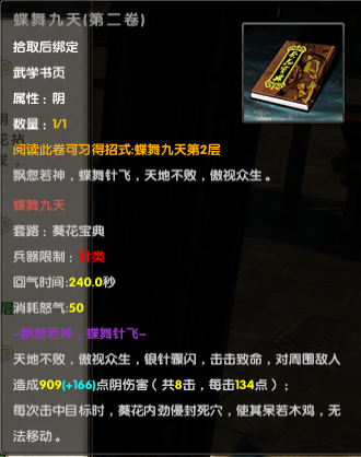 巧捷万端:每次出招都有可能打通全身经脉,30秒内所有同套路招式间无需调息。
