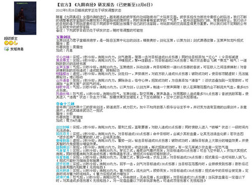 九阴研发报告更新 镇派武学爆出新料
