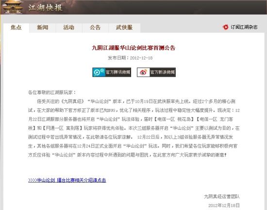 官方的江湖服论剑公告