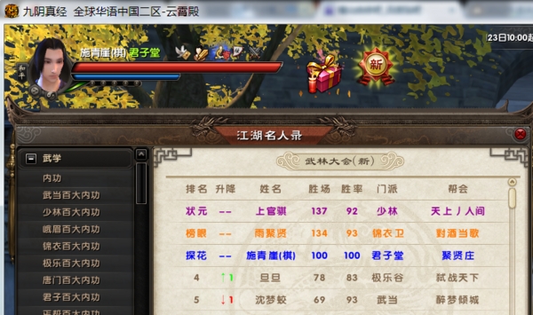 流云剑法共7招。战场每日最高牌子为50个(1等战功)。