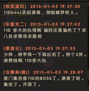 中国二区云霄殿1月5日 7点22分在夺书厮杀的唐门惊爆 11D海捕 人贩独孤哀凉 发布人少帅 只看到各处衙门饱满 捕快如雪花一样飞至唐门 人贩独孤哀凉 躲在安全区不出来 满世界的英雄帖都在联系人贩 看看能不能围捕赏金如何分成 哎 11D叫全服都激动了 7点40 人贩下线 7点45人贩上线后飞往鸡鸣驿站 全服捕快统统飞往鸡鸣驿 一个人贩造成全服激情 后续报道等更新 我也去鸡鸣 看看钱啊 20.20人贩在洛阳全程海捕