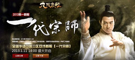 华语电影巨作《一代宗师》跨年热映,《九阴真经(新手、门派、轻功、奇遇)》2013年新年首个服务器“一代宗师”今日(1月11日)下午14:00震撼开启!驰骋江湖路,做一代宗师,更有七大活动联袂开启,获赠极品风物志。2013年的江湖路,就从《九阴真经》新服“一代宗师”开始!