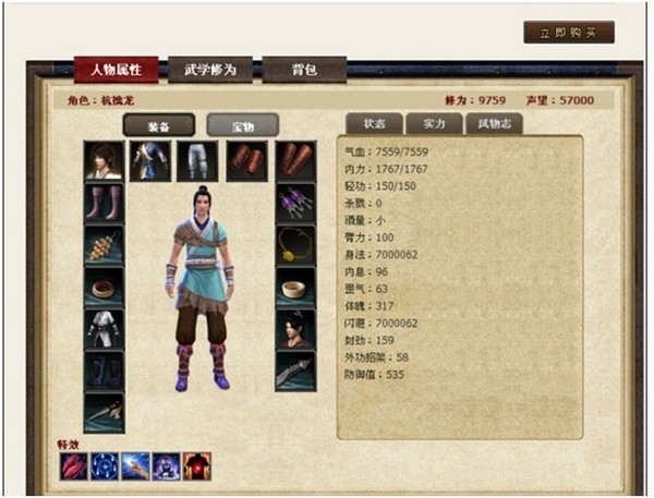 2.查看角色信息时,集市只展示角色信息,装备,武学,行囊中的装备及物品栏,不展示仓库、行囊中的材料及任务栏。