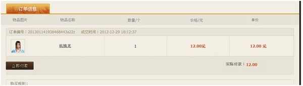 4).付款成功后订单的交易状态为“游戏发货成功,交易完成”说明角色已经转移至买家通行证下,买家可以登录游戏查看。