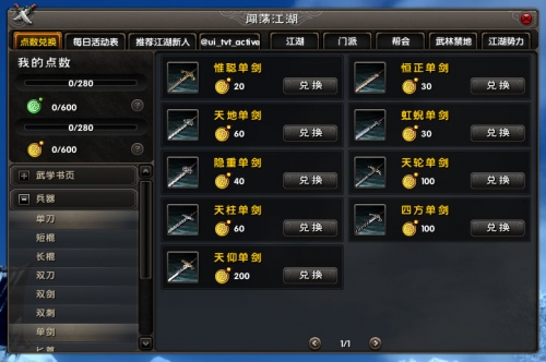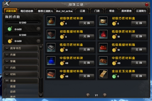 九阴真经专家点/休闲点系统 可兑换装备武学