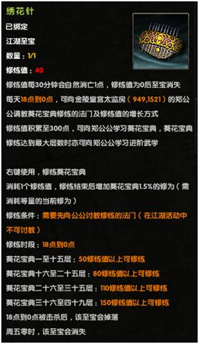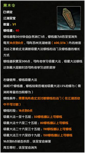 4.每30分钟,修炼值自然消失1点,修炼值减少为0时江湖至宝消失。