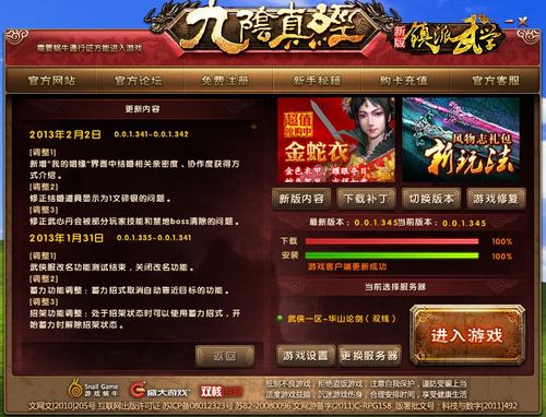 从开测至今,一直关注九阴的玩家可以看到,九阴的更新总在不停的进行。内容上,从BUG的修复到平衡的调整再到版本玩法的更新。这些不断更新的内容正在逐渐构架出一个有血有肉的江湖世界,直到最新的镇派武学、结婚系统、单人踢馆等玩法的加入,《九阴真经》在2013年的第一步让玩家对江湖有了更多的畅想。