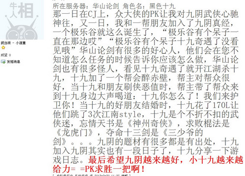 笑傲江湖路 九阴真经玩家续写武侠人生