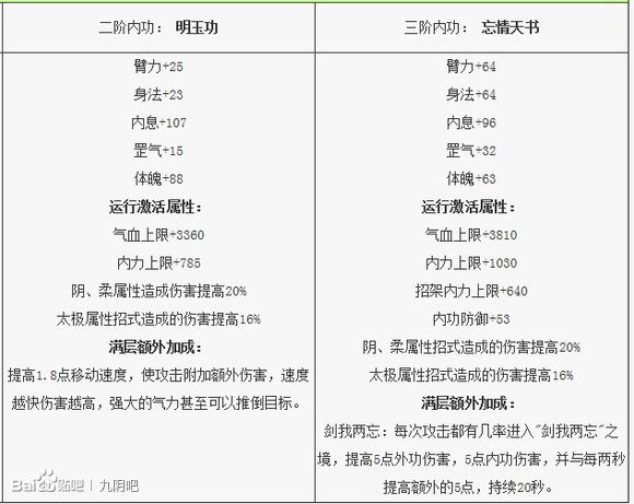 武当二内:在各门派二内中,武当二内有自己的独到之处,极高的内息,和4%的内力伤害,使得其在现在亦不过时。
