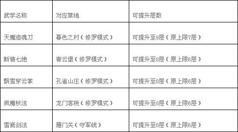 注:以上武学套路中部分招式无法提升上限,请玩家兑换时仔细查看兑换信息。