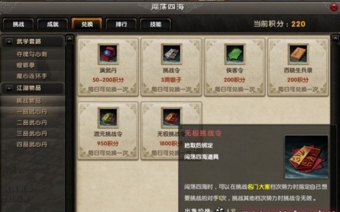 除此之外,在兑换界面新增了“混元挑战令(950积分)”及“无极挑战令(1800积分)”,混元挑战令可指定挑战“闻名于世”档次的挑战对手,无极挑战令可指定挑战“名门大家”档次的挑战对手。