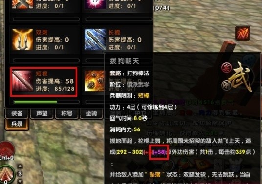 而在更新之后,由兵录附加的伤害将直接显示在技能上,如图,紫色的伤害加成即为兵录提升的数值。