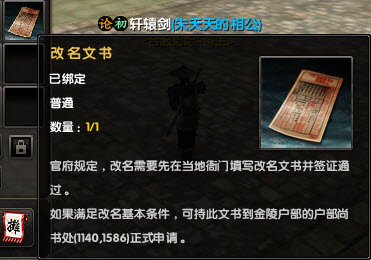 3. 满足改名条件的玩家可以持文书前往金陵的户部尚书(1140,1586)处进行申请