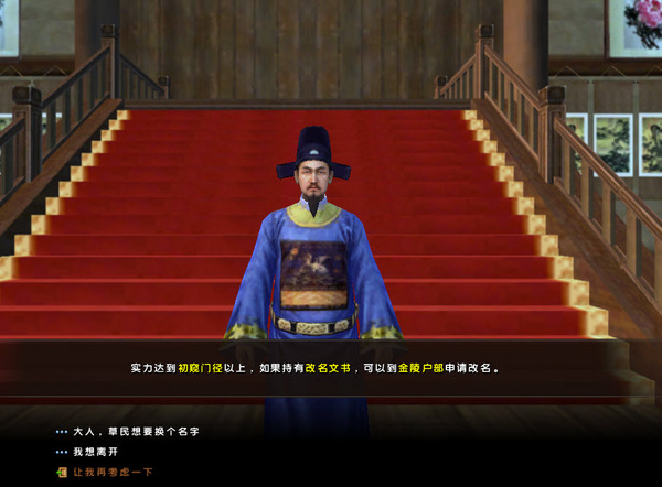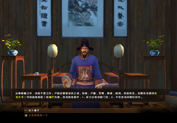 5. 进入后与NPC户部左侍郎对话,进入改名阶段