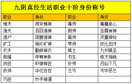 - (2024-07-24) 九阴真经 新区攻略:生活职业相关