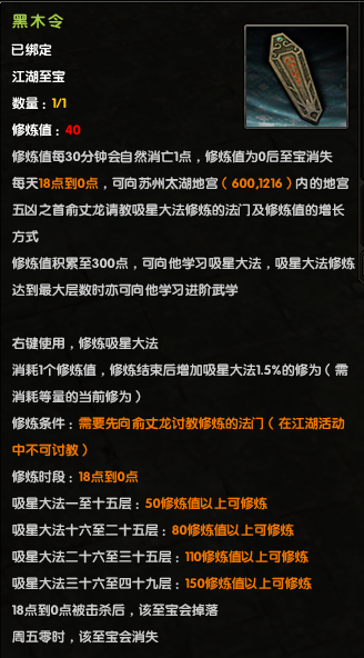 *当至宝修炼值增加或修炼内功时,有几率召唤一批杀手,进入活动状态,每次召唤活动持续一定时间。