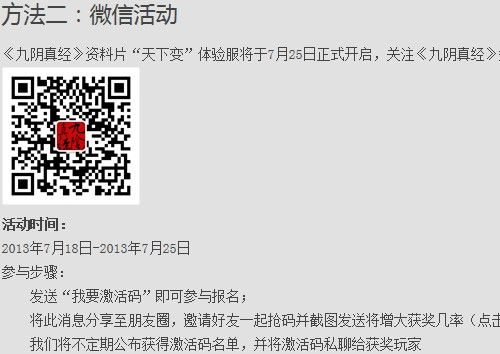 玩家可以通过关注《九阴真经》官方微信,参与抢码活动即有机会获得激活码。