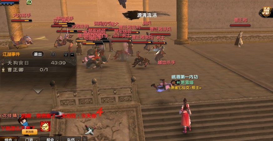 曹正卿:攻击能力单调,只能攻击到身边的人,值得提点的就是他会召唤3次帮手,一召唤就是一窝,里面有用唐门套路的邪门高手,锦衣卫套路的东厂鹰人,武当清风套路的佣兵,还有曹正卿走狗,使用魔心连还手,不过这些喽啰在玩家人海面前都是被群而秒之的命运